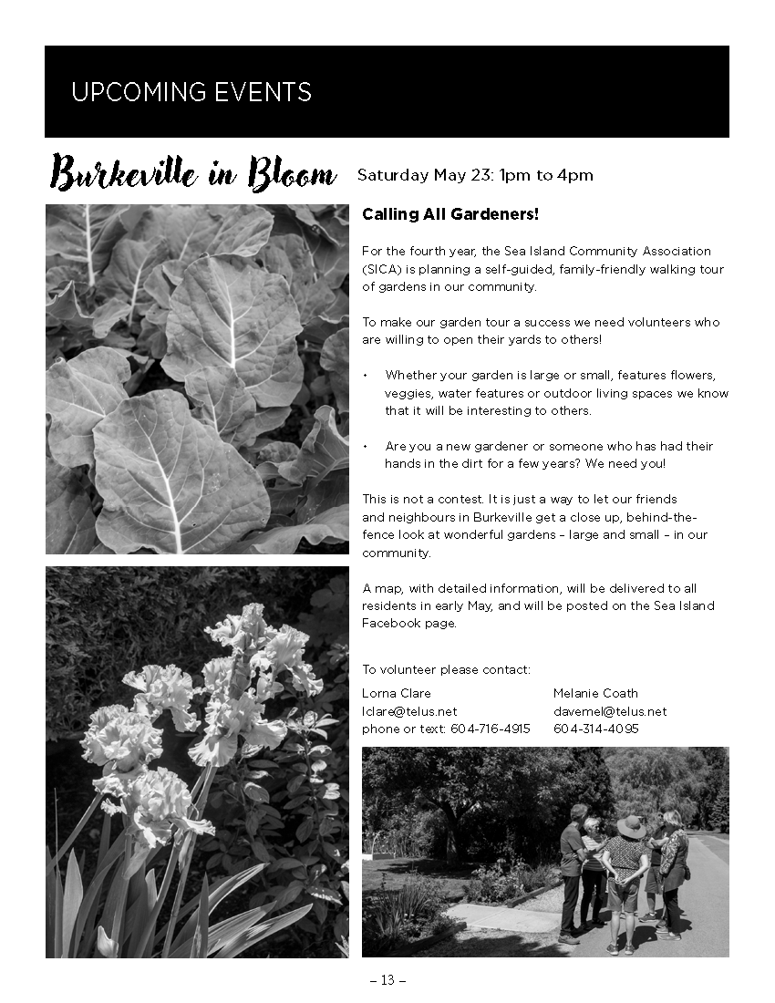 Burkeville in Bloom is an opportunity for our local residents and gardeners to open their gardens to the public. Not only does it showcase all our vibrant gardens, it also shows the avid gardening interest in our community. This event only occurs every other year and will be happening this year, on May 23rd, 2026 from 1300h-1600h (1PM to 4PM)!