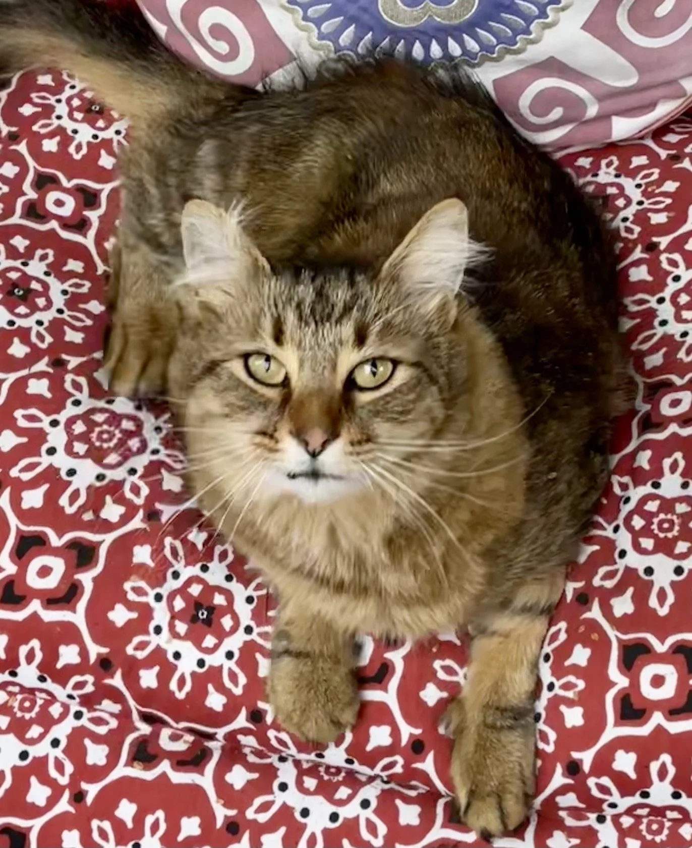 He wanders the neighborhood independent, unafraid and friendly; keeping his eyes open. He makes himself comfortable at any port in the storm. He loves a good scratch and a comfortable perch or nest 😻He says good bye to my friends as they leave. We love him ❤️